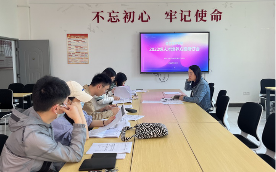会上,刘杨副院长先解读了学校的湘工美职院教字[2022]7号文件 《关于做好2022级专业人才培养方案修订工作的通知》中的重点部分,再从调研问卷的布置、人才培养方案中课程的变更、课程思政主线的提炼、修订报告的撰写等提出了建设性的建议,并强调了人培方案的质量、提交时间等要求。