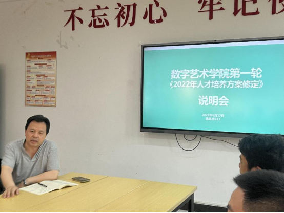 6月17日下午,数字艺术学院第一轮《2022年人才培养方案修订》说明会在逸美楼313举行。学院所有专任教师及教务干事参会。会议由副院长刘杨主持。