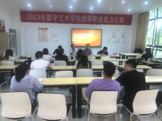 2023年4月20日下午,2023年数字艺术学院教师职业能力比赛在逸美楼313拉开帷幕。