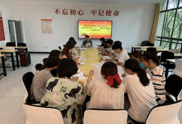 为深入学习贯彻习近平总书记“七一”重要讲话精神,切实把思想和行动统一到习近平总书记重要讲话精神上来,2021年7月8日,数字艺术学院学生第二党支部在逸美楼313党员活动室召开了学习习近平总书记“七一”重要讲话精神读书班分享会,本次会议由支部书记候乾主持,全体党员参加。