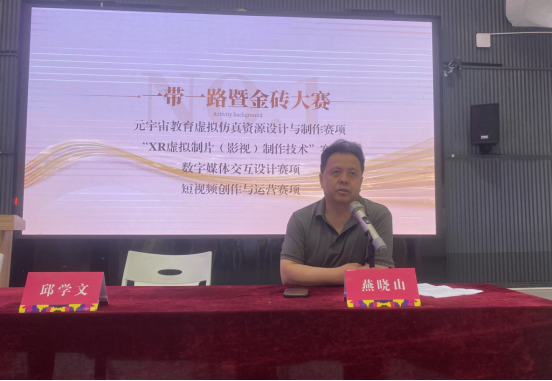 9月26日上午,数字艺术学院“一带一路暨金砖国家技能发展与技术创新大赛”备赛工作室在完美世界数字文创产业学院成立,数字艺术学院党总支书记邱学文、党总支副书记、院长燕晓山、副院长刘杨、各赛项指导教师、参赛同学共计40余人到场参会一起见证揭牌仪式。会议由刘杨主持。