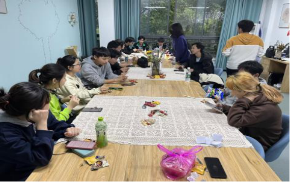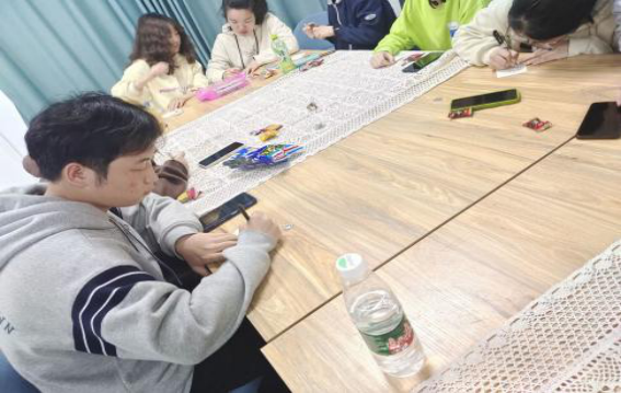 游戏的余热结束,开始本次沙龙的走心交流环节。参与者们在小纸条上写下自己的心事与烦恼,投寄到心晴漂流站,主持人打乱顺序后随机抽取几个进行分享,并引导大家研讨出合适的应对办法。最后每位小伙伴在心语卡片上留下真诚建议或祝福话语,还有擅长手绘的同学附赠了可爱的简笔画送给友人。