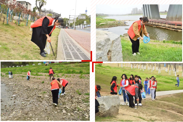 我们的团学干部们热情昂扬,穿上红色小马甲,拎着垃圾袋和铁夹子等工具来到资江边的马路上,把烟头、废纸、绿化带中的废弃物当作他们的搜寻目标,进行一一进行清理。经过三小时的辛勤劳动,路面上、草坪里、绿道边的垃圾被拾捡得干干净净,整个资江沿岸焕然一新。