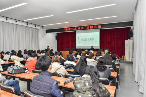 为丰富学校师生的课余文化生活,深刻体会中国书法艺术的博大精深和源远流长,激发广大师生学习书法的热情。11月26日下午,学生工作部、校团委在逸美楼613室开展了一场名为《书法艺术漫谈》的学术讲座。本次书法讲座由盛景华教授主讲,学校副校长彭泽立主持了该场学术讲座。学校书法爱好者近200余人聆听了讲座。