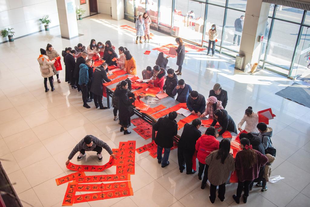 2021年1月18日上午9点30,由我校工会、团委共同组织的“迎新春,写春联,送祝福”活动在致美楼一楼大厅举办,吸引了广大教职工的积极参与。
