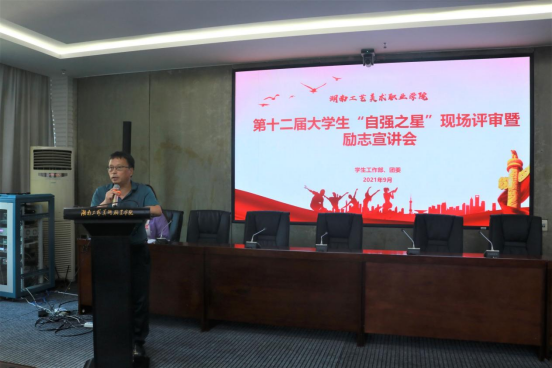 为进一步弘扬百折不挠、逆境拼搏、自立自强的奋斗精神,激励学生志存高远、奋发有为,引导广大青年学生学习身边的榜样、励志成才。9月10日下午,由学生工作部、团委组织的学校第十二届“自强之星”评选暨励志宣讲活动在致美楼206落下帷幕。副校长彭泽立,学生工作部、校团委、公共课教学部等部门负责人,各学院团总支书记、辅导员、学生代表共100余人参与了此次活动。