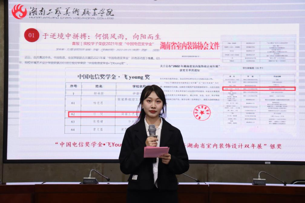 经过评选,软装2003班任悦获“大学生自强之星标兵”,网媒2002班蒋文杰、平面2001班胡兴、服制2101班艾海英获得“大学生自强之星”;平面2003班刘喜等7名同学获得“大学生自强之星提名奖”。