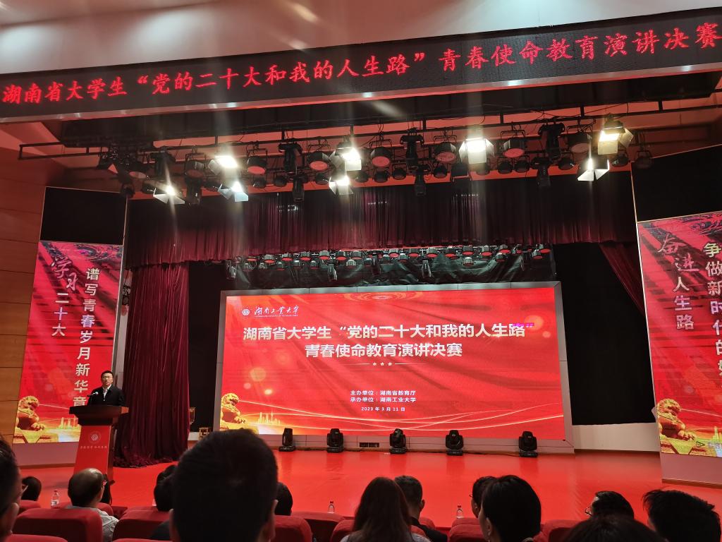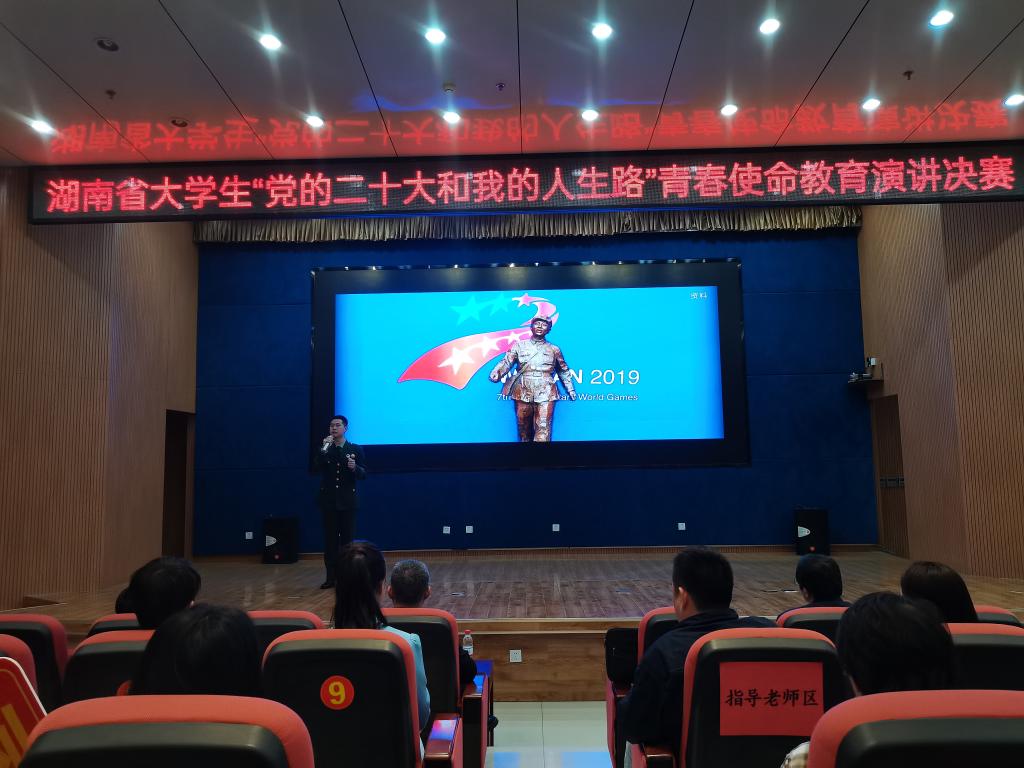 3月11日,由省教育厅主办的湖南省大学生“党的二十大和我的人生路”演讲比赛圆满结束。来自全省20余所高校30名大学生上演了精彩比拼,最终,我校数字艺术学院网媒2002班学生蒋文杰荣获高职高专组二等奖。