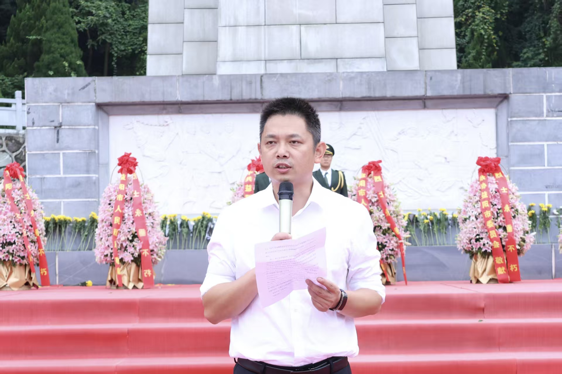 在庄严肃穆的纪念碑前,校团委书记孙魁缓步走向花篮基座,整理缎带。面向师生代表,他回顾了益阳革命先烈为实现民族独立和人民解放所作出的不朽功绩,强调了在新时代背景下继承先烈遗志、弘扬革命精神的重要意义,并向全体同学提出三点希望:一是要铭记历史,传承红色基因,不断筑牢信仰之基;二是要坚定理想,勇担时代使命,为实现中华民族伟大复兴贡献青春力量;三是要珍惜韶华,刻苦学习知识,锤炼过硬本领,积极投身于中国式现代化建设的伟大实践。