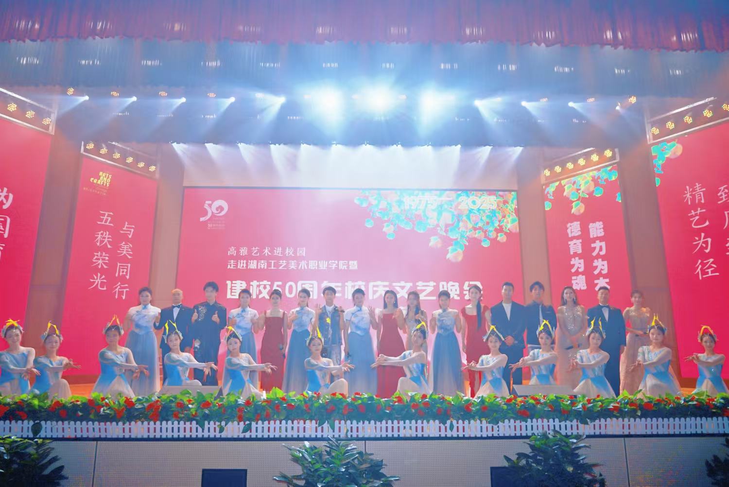 晚会由湖南省歌舞剧院担纲主演,学校社团积极参与,节目编排融合经典与创新、专业与校园气息,呈现出一场跨越时空、情感交融的艺术盛宴。