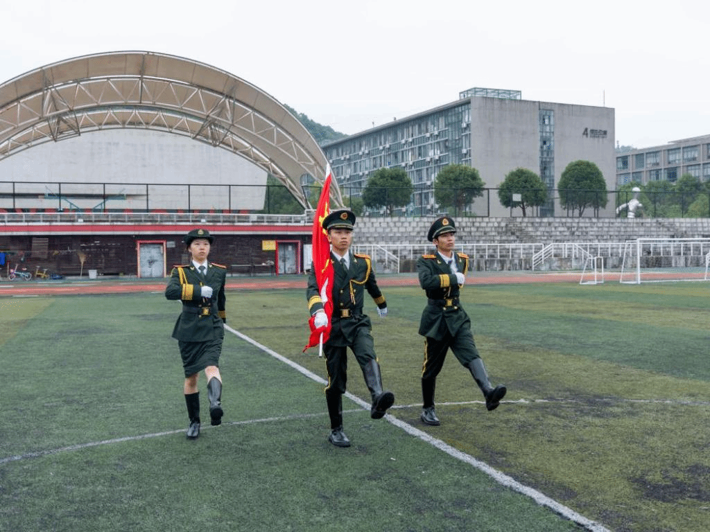 护旗队气宇轩昂、步履铿锵