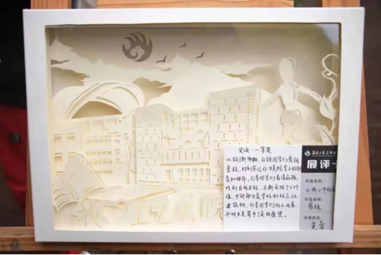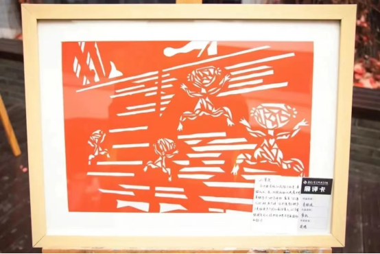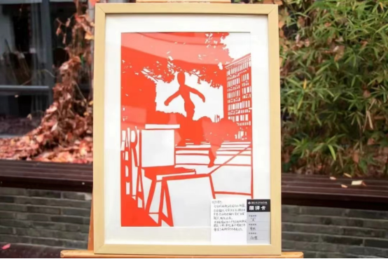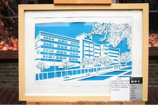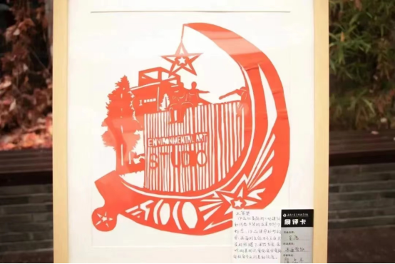 此次活动吸引全校694名学生报名,征集作品400份,经过两轮评审,最终评选出24幅优秀作品并在尚美楼中庭集中展出。参展作品内容丰富,形式多样,生动展现了美院文化的独特魅力。展览现场,室内设计教师党支部书记丁宇老师带领学生们近距离欣赏一幅幅含校园建筑、景物等元素的剪纸创作。丁宇老师娓娓道来,将学生创作与党和国家事业发展、学校文化、人生阅历相结合,吸引众多学生深入了解作品所蕴含的深层价值与深刻内涵,感受学校文化和非遗剪纸的双重魅力,在活动中更加坚定爱国爱党爱校爱院爱专业情怀。
