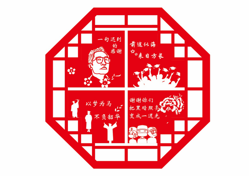 本次比赛围绕着“讴歌抗疫精神”为主题进行创作,运用剪纸艺术,剪心中所念,在弘扬传统文化的同时,也为出征在抗疫一线的工作人员表示敬意,为特殊时期的毕业季同学送上一份美好祝愿。
