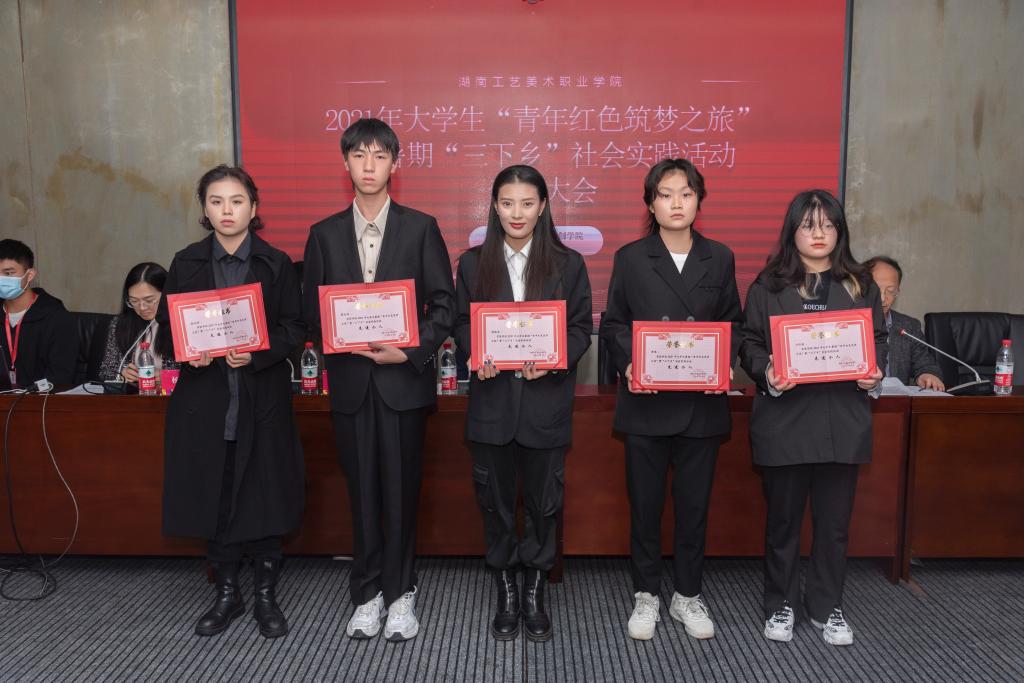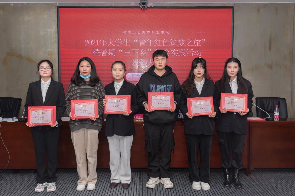 在会上,彭泽立宣读了《2021年大学生“青年红色筑梦之旅”暨暑期“三下乡”社会实践活动表彰决定》,分别授予尚美乡村振兴实践团等6支团队“优秀团队”,欧阳浩洪等14名教师“优秀指导教师”,唐耀洲等18名学生“先进个人”荣誉称号。