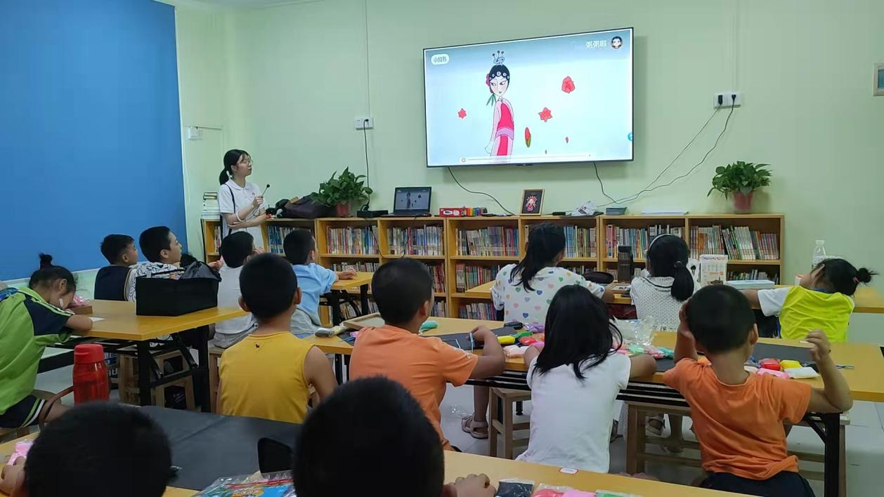 “老师,我的画好啦!”在蒙古族服饰和藏族服饰绘画艺术课堂上,小朋友们在志愿者老师的指导下,一笔一划地勾画着蒙古族服饰和藏族服饰的线条。蒙古族服饰和藏族服饰是国家级非物质文化遗产,通过绘画的形式来增进小朋友们对非遗文化的了解,培养他们的色彩感知和动手能力,让他们从不同形式上了解非遗文化和民族文化之美,增强了他们对民族文化的认同感和自豪感。在手工艺术民族风饰品制作课堂上,小朋友们在领略中华民族不同民风的服饰品和色彩搭配之美后,积极尝试用不同的材料装饰手中的物品,体验不同色彩搭配带来的乐趣。黏土艺术戏曲人物造型课堂备受小朋友们的青睐,他们通过志愿者老师的讲解增加了对戏曲人物造型和戏曲服装的认识,并用超轻黏土动手捏制了戏曲人物。