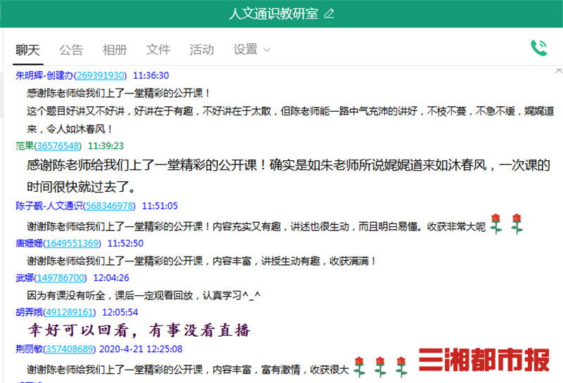 陈波玲主讲的《魏晋风度》备受关注,学校教学督导室周学文、李碧高、公共课部洪华平以及人文通识教研室全体教师参与了此次公开课活动。陈波玲从社会、行为、精神三个层面阐述魏晋风度的表现,从审美、精神世界两个层面分析了魏晋风度的当代价值。授课过程中陈波玲与学生积极互动,氛围热烈,激发学生深入理解和思考,畅谈感想和体会。在举手提问环节,人文通识教研室专兼职教师参与讲解,从不同角度进行解读,进一步加强了学生对魏晋风度精神内涵的理解。陈波玲老师教学功底扎实,具备独特的教学风格,在教学手段上进行了新的探索和尝试,为我们呈现出一堂生动的教学直播课。