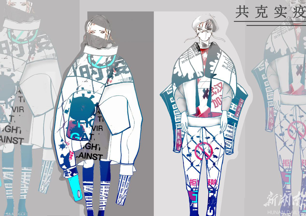 面对新冠肺炎疫情,艺术并不能提供最直接的帮助,但它能表达对生命的热爱,对英雄的敬重,对无数默默奉献者的感怀。新湖南客户端记者 王铭俊 通讯员 吴宝善 (陈彦名服装设计作品:《共克实疫》)
