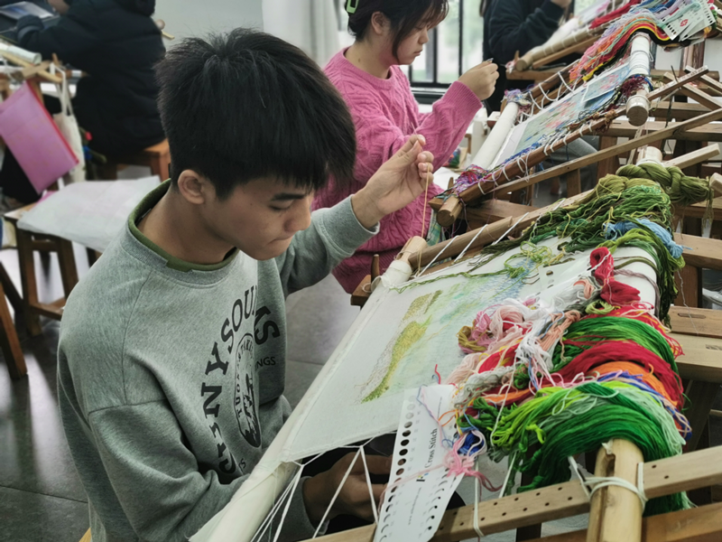 “想转专业的男同学们经过一段时间的努力,还是决定继续下去。”在女同学的眼中,男生们有学习湘绣的优势,林凯的同学盛诗尧认为,“女生细腻,男生的针法更豪放,同样的作品也有不同的感觉。”
