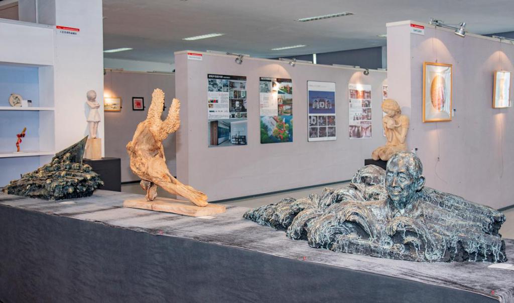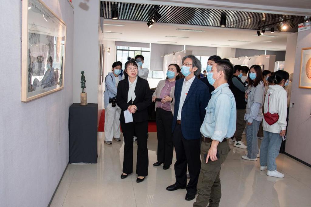 开幕式结束后,现场师生共同参观了作品展。展出作品主题鲜明、题材多样,构思新颖、贴近时代,具有思想性和创新性,富有浓郁的时代气息和较高的艺术价值。刺绣作品《寸土不让》《袁隆平院士》内涵丰富、技艺精湛;油画作品《大美中国》《红都瑞金》笔触粗犷、寓意深刻;工艺美术作品《冰雕连》《战士》生动传神、制作精良。《中国喜》《勿忘历史 吾辈自强》等平面设计作品表达了作者对党的热爱、对祖国的祝福,《新时代文明实践中心》《清溪书屋》等环境艺术设计作品充分展示了学校教师服务地方文化发展、助力乡村振兴的责任与担当……作品展用小切口反映大主题、小作品反映大时代,用不同的艺术表现形式讴歌党的光辉历程和伟大成就,得到了现场师生的一致好评。