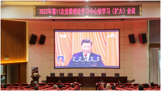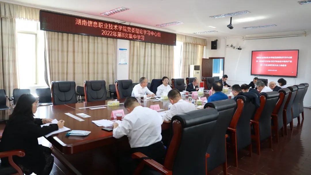 在收看开幕会直播后,湖南工业职业技术学院党委理论学习中心组举行会议,专题研讨学习党的二十大报告。
