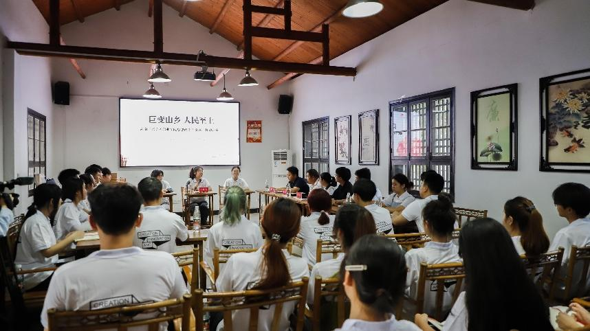 师生们参观走访了周立波故居、清溪村作家书屋、清溪展厅,与清溪村党支部书记、作家书屋设计项目负责人、学校优秀毕业生在清溪讲堂座谈。在观察、体验、交流中感受清溪村新时代的山乡巨变,感悟周立波等文艺工作者的人民情怀,深刻理解“以人民为中心的发展思想”并思考如何践行。