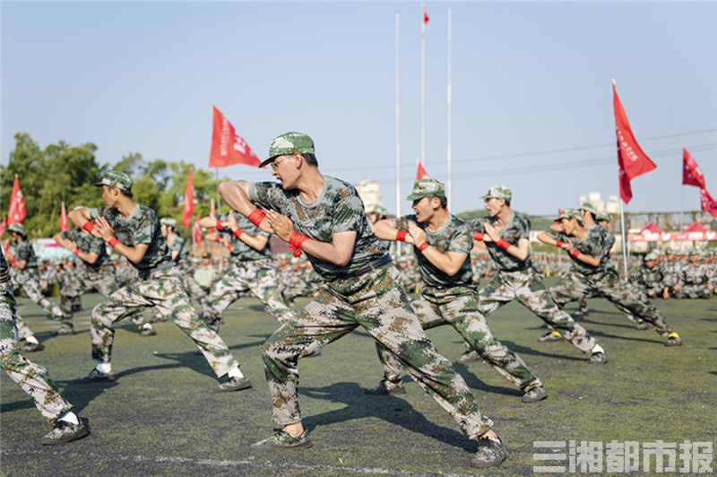 开学典礼在雄壮的国歌声中拉开序幕。在军训汇报表演环节,各受阅方队斗志昂扬、精神抖擞,迈着整齐划一的步伐,喊着嘹亮的口号,满怀激情和信心经过主席台接受检阅。军体拳表演动作标准、铿锵有力,他们飒爽的军姿、精彩的表演赢得了现场师生阵阵掌声,展现了新生积极向上的精神风貌。