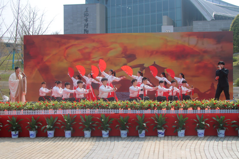 春日暖阳下,文艺表演精彩纷呈,学生们带来了茶艺表演、《论语》诵读、《炎黄子孙》街舞、《典籍里的中国汉服》剪纸秀等节目。现场设有“阅读与美”服装服饰设计和“全民阅读公益广告”作品展览,根据文字内容竞猜书名活动,现场人气满满。