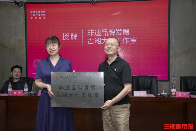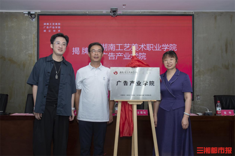 “广告产业的发展离不开行业特色人才的支撑。”湖南省广告协会会长曾小明希望,学校广告产业学院成为广告产业发展的新引擎,实现“广告湘军看益阳、广告湘军看工美”的宏伟目标。湖南省广告协会秘书长古湘认为,广告产业将成为中国第三产业的基础产业,他希望通过广告产业学院和非遗品牌发展大师工作室的创立,助推湖湘特色产品走进人们的日常生活、走向更美好的未来。