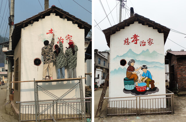 经过一周时间的奋战,学校师生团队绘制了“孝道文化”主题墙绘12幅、“耕地保护”主题墙绘3幅、政协宣传主题墙绘3幅、美丽乡村风景主题墙绘2幅,总计面积近500平方米。
