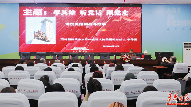 “我们趴在战壕里,敌人的炮弹不断在周围爆炸,泥土和碎石飞溅,仿佛死神就在身边徘徊。”宣讲中,李仲国精神饱满、富有激情,结合自身经历和历史背景,用朴实的语言深情讲述了当年的战斗故事,把大家带回了抗美援朝那段汗水与泪水交织、鲜血与战火汇聚的峥嵘岁月,再现了抗美援朝战争中艰难惨烈的历史场景和可歌可泣的战友深情。志愿军不屈不挠、无私奉献、英勇无畏的感人事迹震撼了在场的师生,让大家为之动容、哽咽落泪。李仲国希望,广大青年学子将爱国热情化作刻苦学习的动力,努力提升专业技能,为建设社会主义现代化强国贡献自己的青春力量。在场师生认真聆听,不时响起了阵阵掌声。