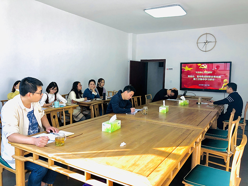 11月15日下午,党政办、宣传统战部联合党支部在致美楼三楼会议室开展“不忘初心、牢记使命”第二次集中学习研讨,党支部全体人员参加学习,党支部书记杨金辉主持。全体人员紧扣“担使命、履职责,矢志服务师生”主题,聚焦习近平总书记坚持以人民为中心的重要思想和关于群众路线的重要论述,立足工作实际,畅谈学习感悟,对照先进找差距,提出改进措施,交流学习体会。大家一致认为,要牢记立德树人根本任务,强化宗旨意识、服务意识,切实履职尽责,积极主动作为,真抓实干,将学习成果体现在工作上、落实到行动中,推动学校蓬勃发展。