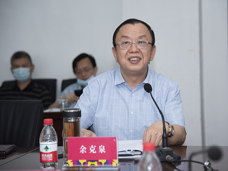 汇报会上,余克泉从章程实施组织领导坚强有力、章程规定落实及配套制度建设成效显著、章程实施推动学校有特色高质量发展等三个方面系统汇报了学校章程实施情况。