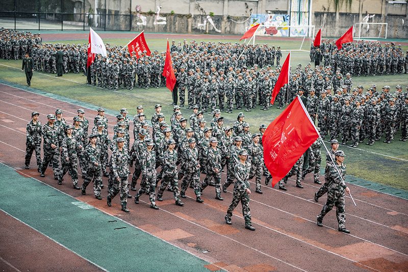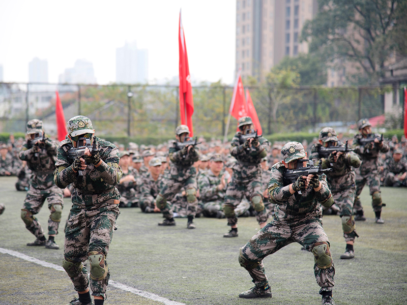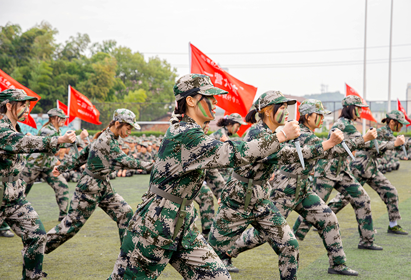 典礼在雄壮的国歌中开幕。在分列式展示环节,各方队步伐整齐、口号嘹亮、气宇轩昂地经过主席台接受检阅,展现了当代大学生热爱祖国、朝气蓬勃、积极向上的精神风貌。军事训练科目汇报演示环节,擒敌拳、匕首操等陆续登场,动作整齐划一、气势非凡;精彩的战术表演铿锵有力、动作精准,赢得了现场师生雷鸣般的掌声。