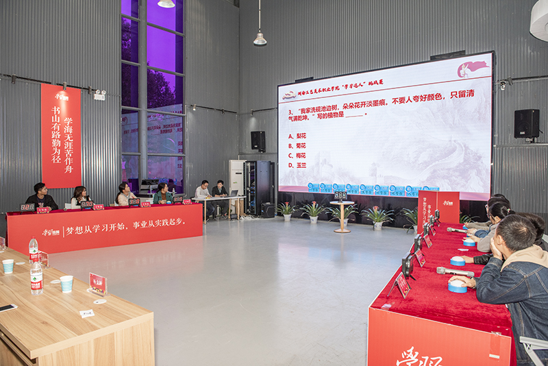 本网讯 11月20日下午,学校在数字文创产业学院一楼举行“学习达人”挑战赛。学校党委书记余克泉、纪委书记刘凤姣、副校长彭泽立,党委委员、组织人事处处长于安国,党委委员、宣传统战部部长杨金辉,各党总支书记、直属支部书记、副书记,参赛队员和师生代表等共100余人参加。