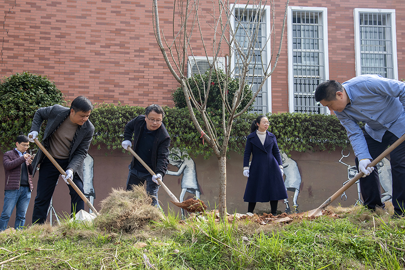 本次活动由学校后勤处组织,共种植樱花树、红叶李树近30棵,既美化了校园环境,又增强了教职员工爱校荣校的意识,为美丽的校园增添了一道亮丽的风景。
