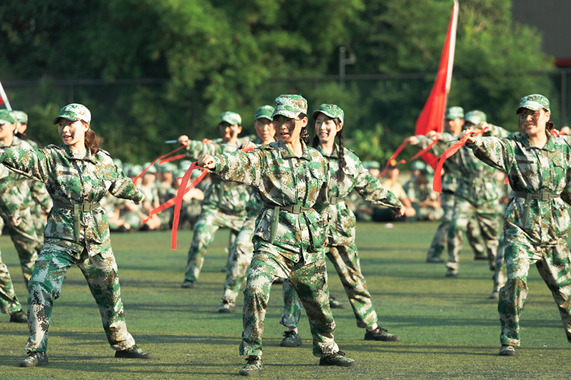 在分列式展示环节,历经军训淬炼的新同学精神抖擞、士气高昂,各营方队口号嘹亮、步伐整齐,依次经过主席台接受检阅。在军事训练科目汇报表演环节,军体拳、女子匍匐刀等陆续登场,同学们动作规范、斗志激昂,赢得现场阵阵掌声,向大学“第一课”交上了一份合格答卷。