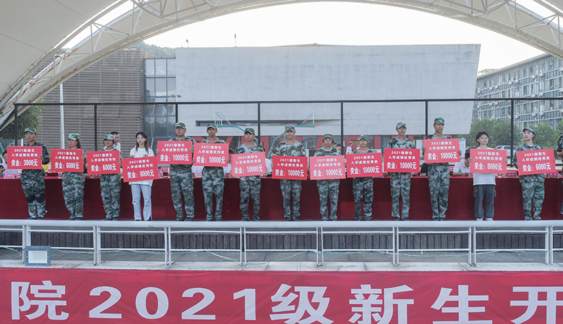 党委副书记汪泳波宣读了《关于表彰2021级学生军训先进集体和优秀个人的通报》《关于表彰2021级新生入学成绩优秀奖获得者的决定》《关于表彰2020-2021学年学校综合奖学金获得者的决定》《关于表彰2021年上学期学校优秀班级、三好学生标兵、十佳学生干部、三好学生、优秀学生干部的决定》。