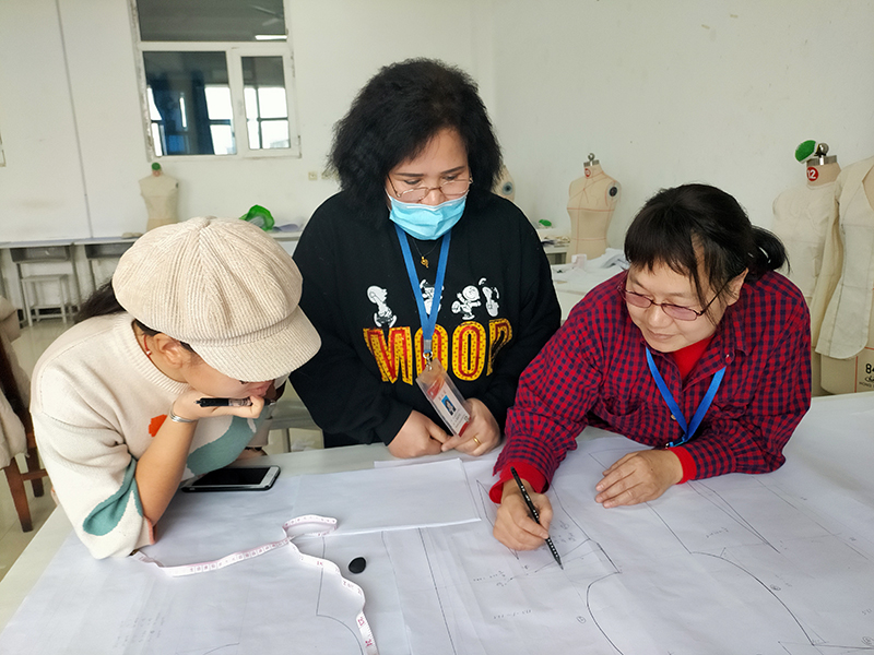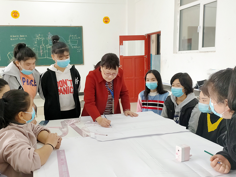 作为一名有着多年教学经验的服装专业老师,陈正英深知实训练习对学生的重要性。在她的反复申请下,带领吐鲁番职院的2名教师开始了实训室的建设工作。将学校食堂的三楼收拾干净,作为服装工艺实训室;找来的20多台陈旧的缝纫机,经过调试、修理后,有10台勉强能用于服装工艺实训;申请的20个立体裁剪模型陆续搬上了教学课堂;利用休息时间,在一同短期支教的湖南大众传媒学院田永民老师的帮助下把40台电脑和教学软件全部安装完毕。学生开始运用电脑进行服装CAD打板,虽然不是人手一台电脑,但实现了教学信息化。