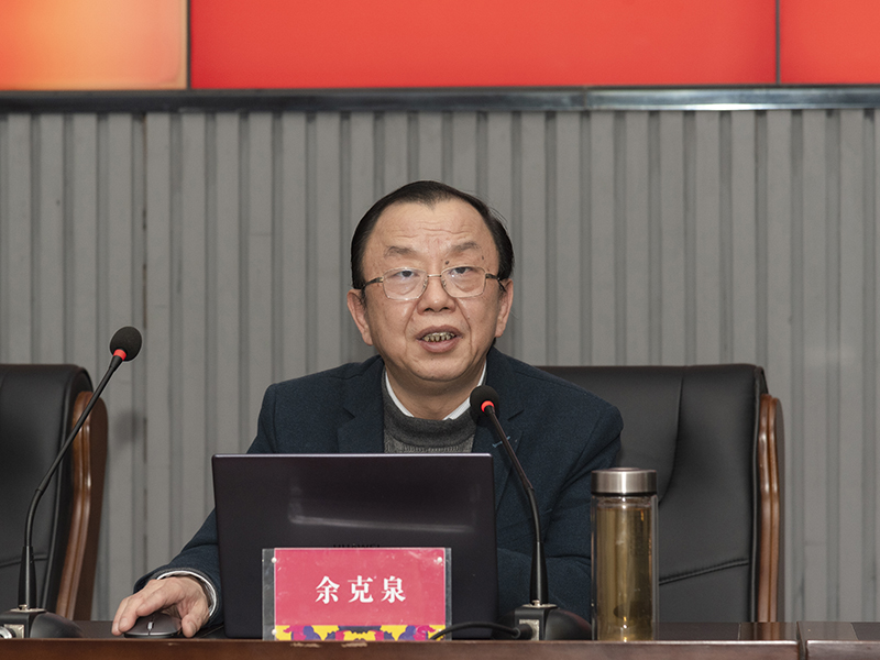 4月20日下午,学校党史学习教育宣讲报告会在致美楼五楼学术报告厅举行。学校党委书记余克泉作宣讲报告,全体党委领导班子成员参加报告会。党委副书记汪泳波主持报告会,全校教职工聆听了报告。