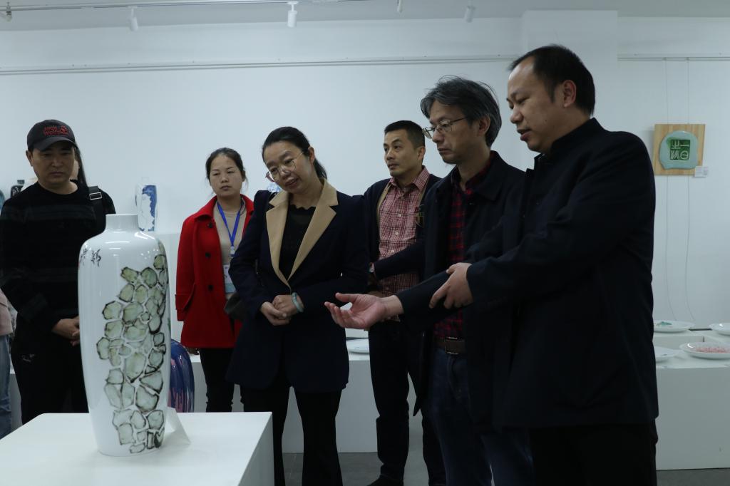 结业典礼前,与会领导、参会人员一同在展厅观看了结业成果展。本次展览是研培学员30天集中学习的成果汇报,共展出20位学员的103件陶瓷作品,结业作品题材广泛,既有传统工艺精品,也有融入现代元素的创新设计佳作。