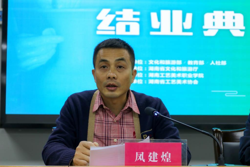 培训中心凤建煌主任从培训实施过程、培训师资情况以及培训成果等方面对本期培训进行了全面总结。他谈到,陶瓷研修班的培训课程内容涵盖非物质文化遗产公约解读、醴陵釉下五彩瓷的历史及发展现状、陶瓷工艺、陶瓷文化的传承与创新、移动互联网时代的手工作品推广、陶瓷装饰纹样设计等多个方面,并邀请了全国知名专家、工艺美术大师、陶瓷艺术大师来校授课,非遗项目代表性传承人及资深从业者的授课时长超过总课时的20%。学员们系统的学习了陶瓷非遗项目的基础知识和重要原理、陶瓷非遗项目的历史和文化,掌握了陶瓷制作的重要技艺和技巧,学习了互联网产品推广和产品设计创意。通过培训,学员们的艺术素养、技艺创作水平有了大幅度的提升。