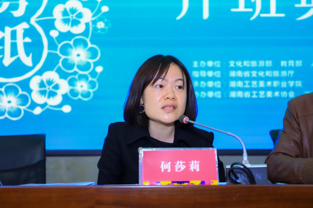 学员代表李健感谢湖南工艺美院对剪纸非遗传统技艺的支持,希望能接受到系统、全面的培训及指导。她代表全体学员表示,一定不辜负学校栽培和期望,锐意进取,将所学知识植入到工作中,为剪纸非遗技艺的传承推广作出自己的贡献。