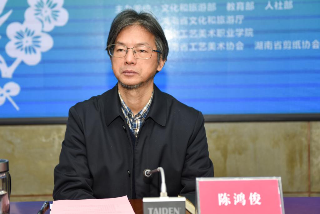 校长陈鸿俊对学员们通过培训取得的成绩给予了充分肯定。他谈到,本期剪纸培训班呈现出四个特点:一是教学计划实,培训各项工作精心筹划,课程设置科学合理,培训过程衔接紧凑,秩序井然;二是班级学风浓厚,学员学习态度认真,在培训中能够相互交融,互相学习,共同提高;三是师资层次高,培训邀请了十余位资深教授、大师授课,组建了高水平的师资团队,教学互相促进,有效提升了学员们的文化艺术素养、审美能力和创新能力;四是培训成效明显,学员通过培训,开拓了创作思路,结业作品融入了更多现代设计元素,反映了学员们在设计理念和技艺水平上的提高。他希望学员们不忘初心,做非遗传承与创新的坚守者与先行者;高处着眼,做非遗传承与创新的引领者与先知先觉者;交流交友,做非遗文化的优秀传播者与推广者。