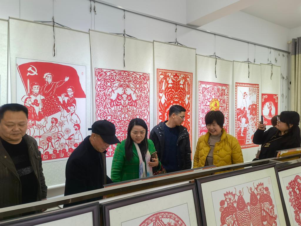随后调研小组一行来到了桃江剪纸培训基地,桃江剪纸协会会长肖国新向调研小组汇报了桃江剪纸基地开展社区活动的情况,主要有剪纸进校园、剪纸进社区、剪纸进乡村,通过一系列的活动吸引中小学生加入到剪纸技艺的学习中来,通过学生的剪纸培训带动家长和周边人群关注和学习剪纸技艺。