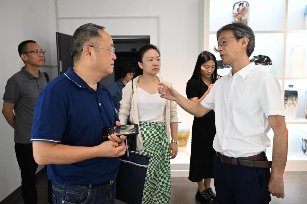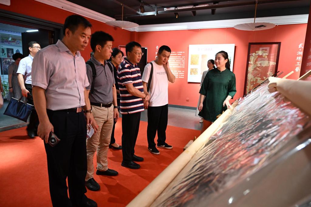 我校党委书记陈鸿俊全程陪同来宾参观了非遗展厅、“非遗研培计划”培训成果展厅、传统工艺展厅、毕业设计精品展厅、手工艺术学院、湘绣艺术学院。来宾对我校的热情接待表示感谢,对学校近年来取得的发展成就表示赞赏,学校育人理念、办学特色等给来宾留下了深刻的印象。