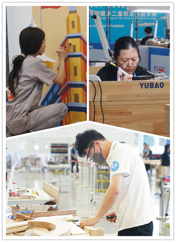 油漆与装饰、珠宝加工(国赛)、木工(国赛)选手比赛现场