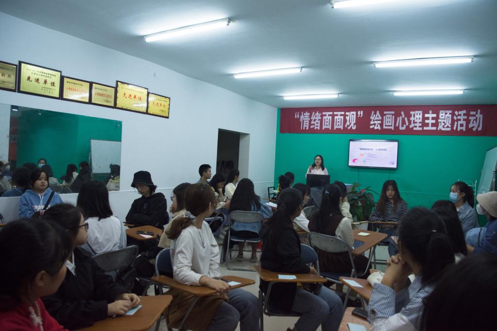 后疫情时代学校高度关注学生的心理健康状态,充分发挥学校“六位一体”阳光心育的功能,在2020年“10.10精神卫生日”之际,特举办以“给心灵一米阳光”为主题的后疫情时代阳光心理服务系列活动。9月29日下午,心健中心在怡心馆阳光城举办了第一场“情绪面面观”绘画心理活动。活动由学校专职心理教师陈燕妮主持。