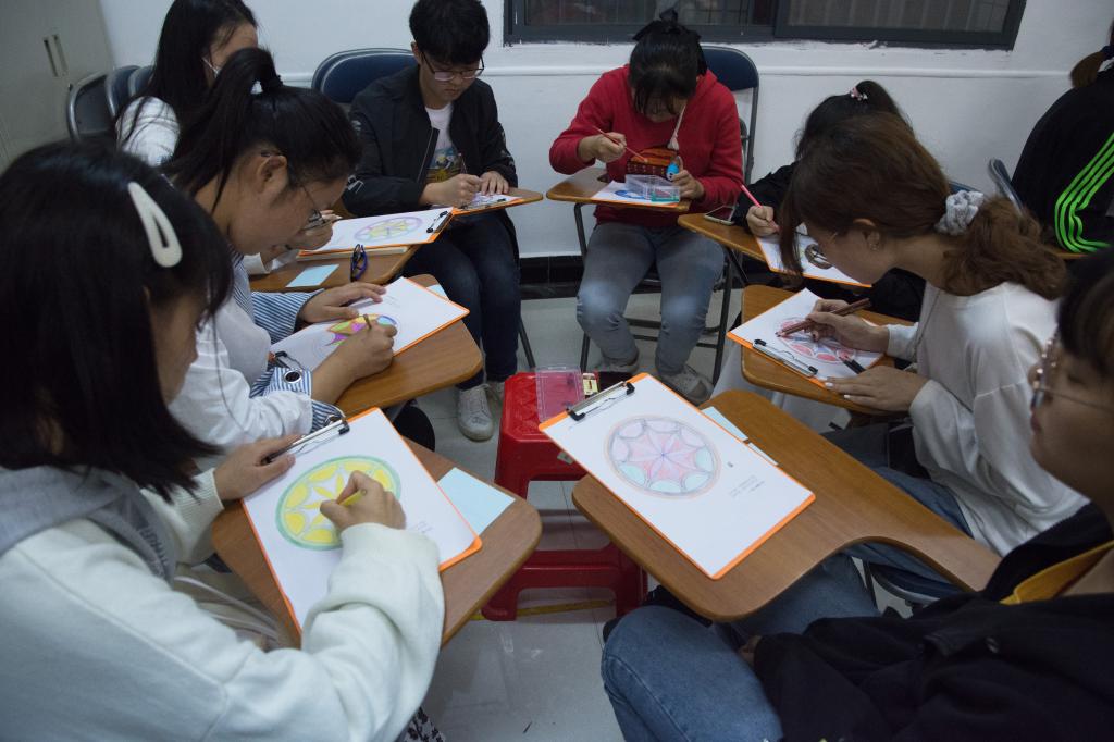 活动前期通过学校“一米阳光心灵花园”微信公众平台、学校心理委员群、班长群进行招募,同学们参与活动的积极性非常高,很快就招募到了来自各学院的30名成员。活动现场,一曲轻松活跃的开场音乐,调动了大家参与活动的热情,消除了彼此之间的陌生感。小组成员互相认识,组长进行团队个性化展示。接着,在陈老师的指引下,同学们各自描绘自己的心灵绘画。最后,分享环节,同学们纷纷表达自己的感悟。纷纷表达,体会到活动的乐趣,发现了认识自我的机会,感受到了小组的温暖和活动场的幸福,感恩遇见......