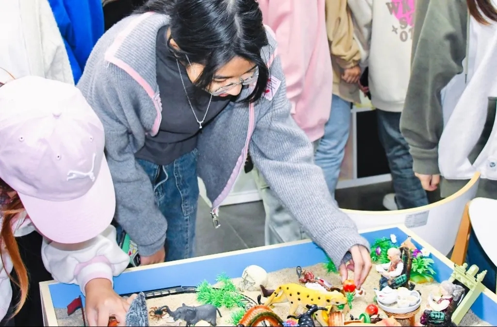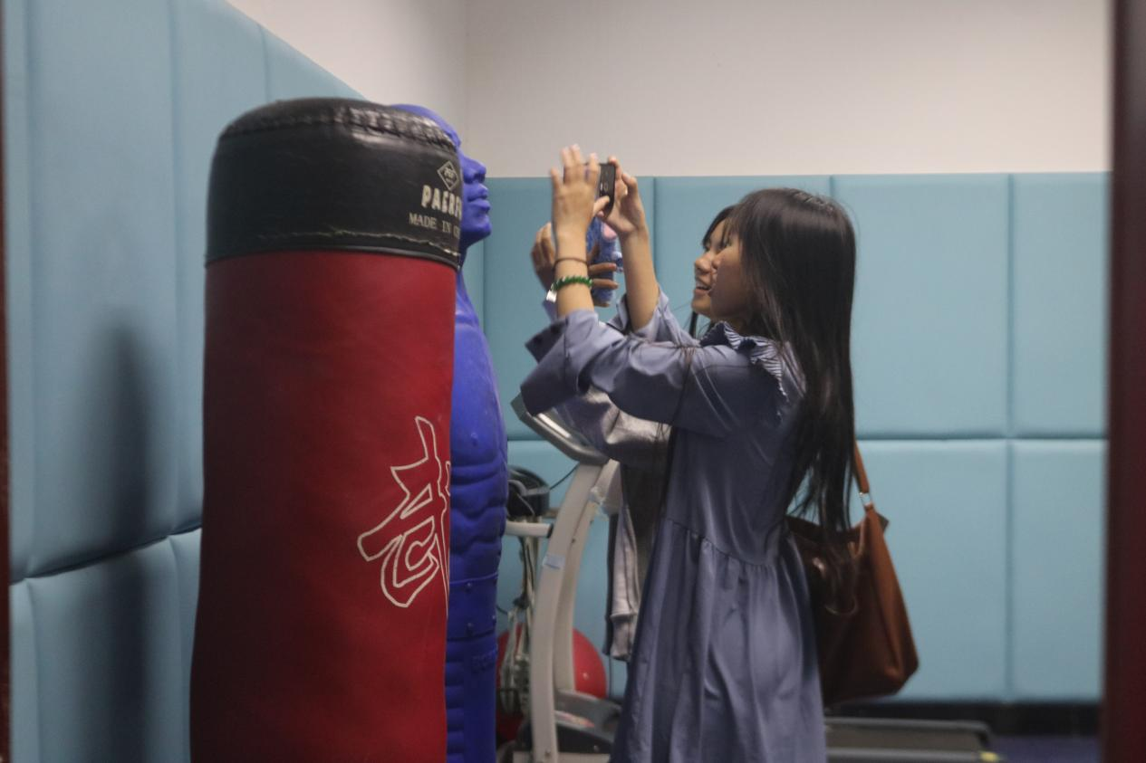 参观现场,“阳光天使”学生朋辈心理辅导员正在担任解说员,微笑着为新生讲解学校心理咨询预约的流程,介绍学校心理师资团队,带领新生走进馆内的每个功能室参观。同学们沉浸式体验了学校温馨的心理咨询室、解压的心理宣泄室、美丽的心灵花园、好奇的心理沙盘室等等。同学们一边体验、一边将所见所闻拍照、录视频,并分享到微信朋友圈。参观完后,同学们还积极参与活动抽奖。整个活动过程,同学们都非常愉悦,脸上洋溢着幸福的笑容。