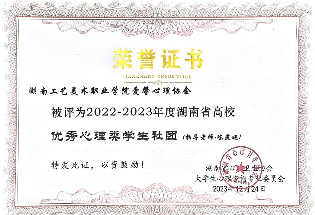 图4 优秀心理类学生社团证书